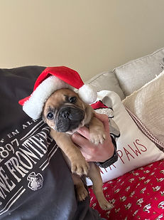 Clawdean's retirement family first met her when they adopted one of her puppies, Rowdy (pictured below). So cool that Clawdean gets to be a part of their family now too!